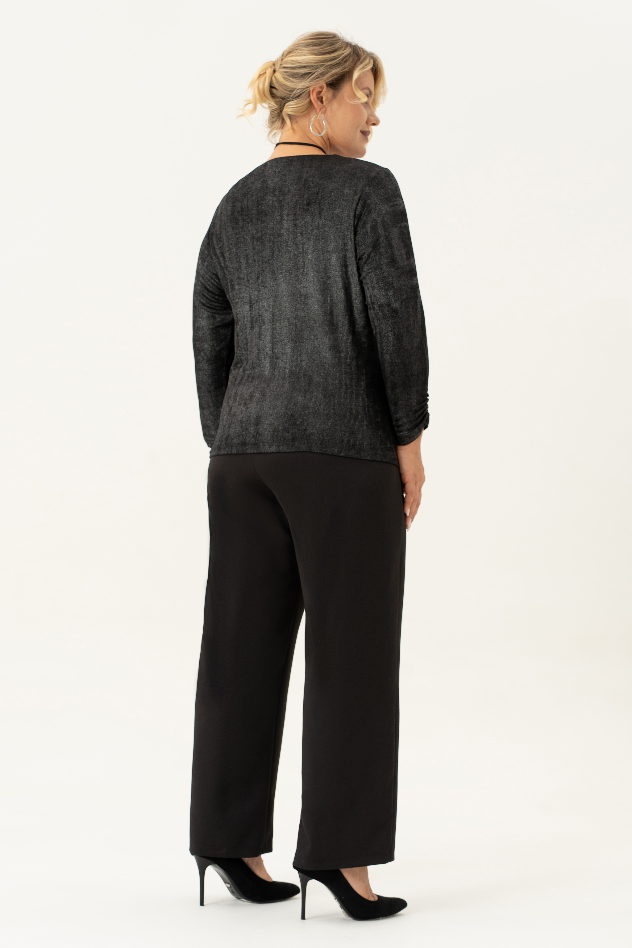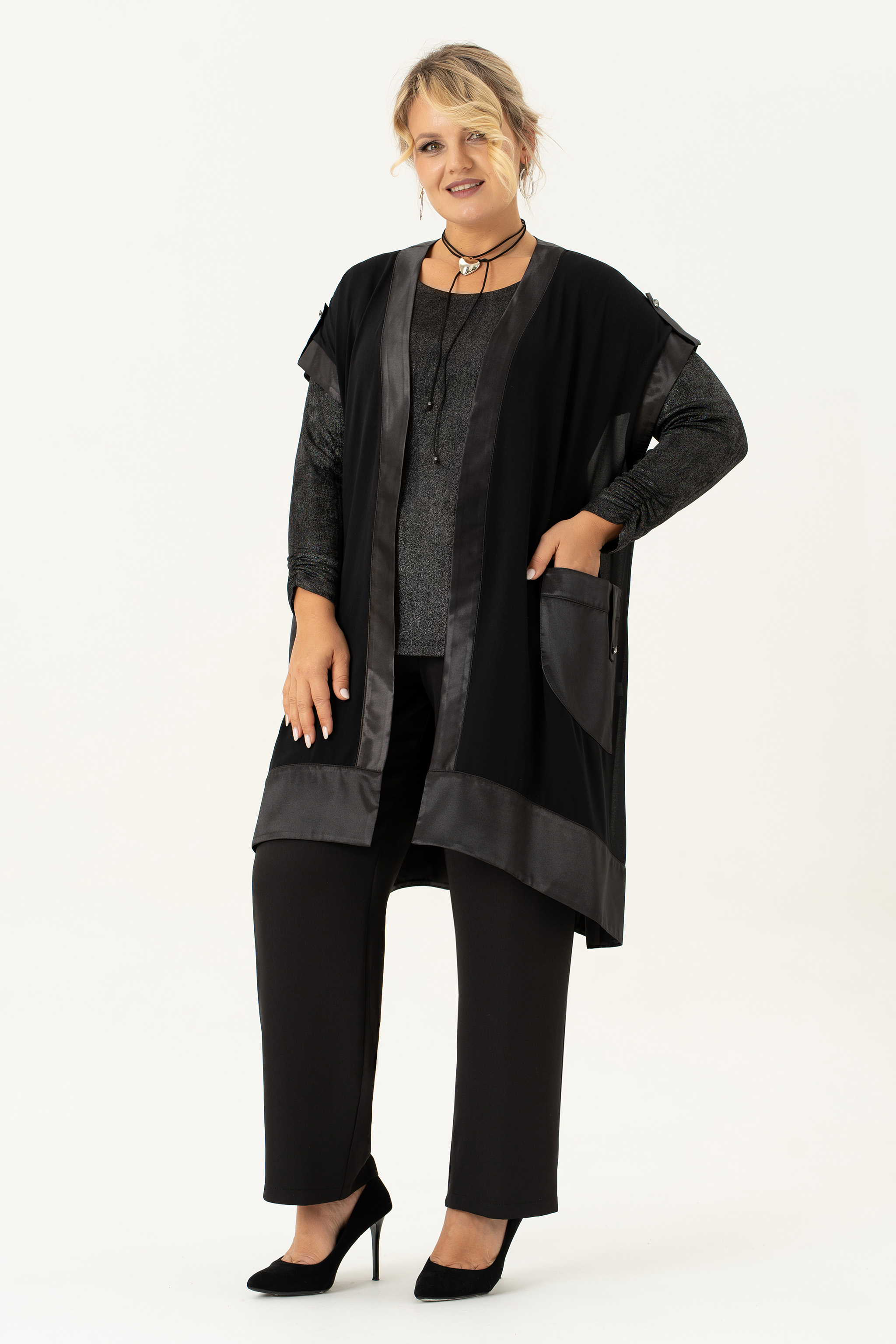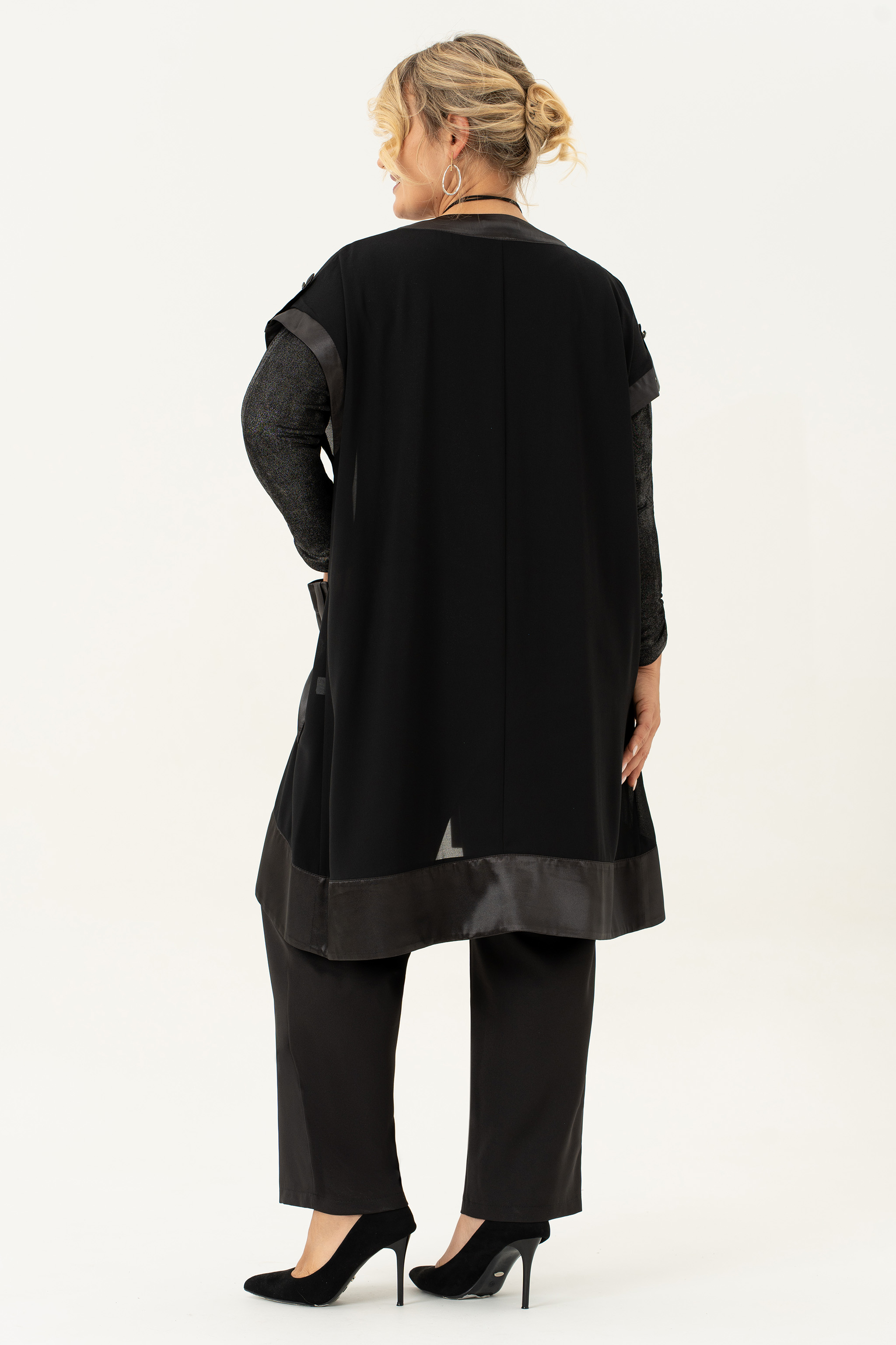 Вы ищете стильный и современный комплект для Дня рождения, корпоратива, Нового года? У нас есть идеальное предложение для Вас - комплект -тройка большого размера, который состоит из кардигана, брюк и ,блузы с длинным рукавом. Вся одежда изготовлена из ткани, обладающей высоким качеством. Важно отметить, что наш комплект-тройка доступен в больших размерах, модель подчеркнет Ваши достоинства и сделает Вас неподражаемой на любом мероприятии и также в повседневной жизни. Брюки прямого силуэта, на резинке не будут сковывать движения. Кардиган выполнен в сочетании двух тканей: шифона и атласа, со спущенной линией плеча. На полочке обработаны накладные карманы, декорированные патой на петлю и пуговицу. Лонгслив изготовлен из тонкого трикотажного полотна с блестящим напылением, напыление не осыпается! Блуза можно скомплектовать с чем-угодно – важно только Ваше чувство стиля и погода за окном. Такой комплект просится в Ваш гардероб и сделает Вас неотразимой!