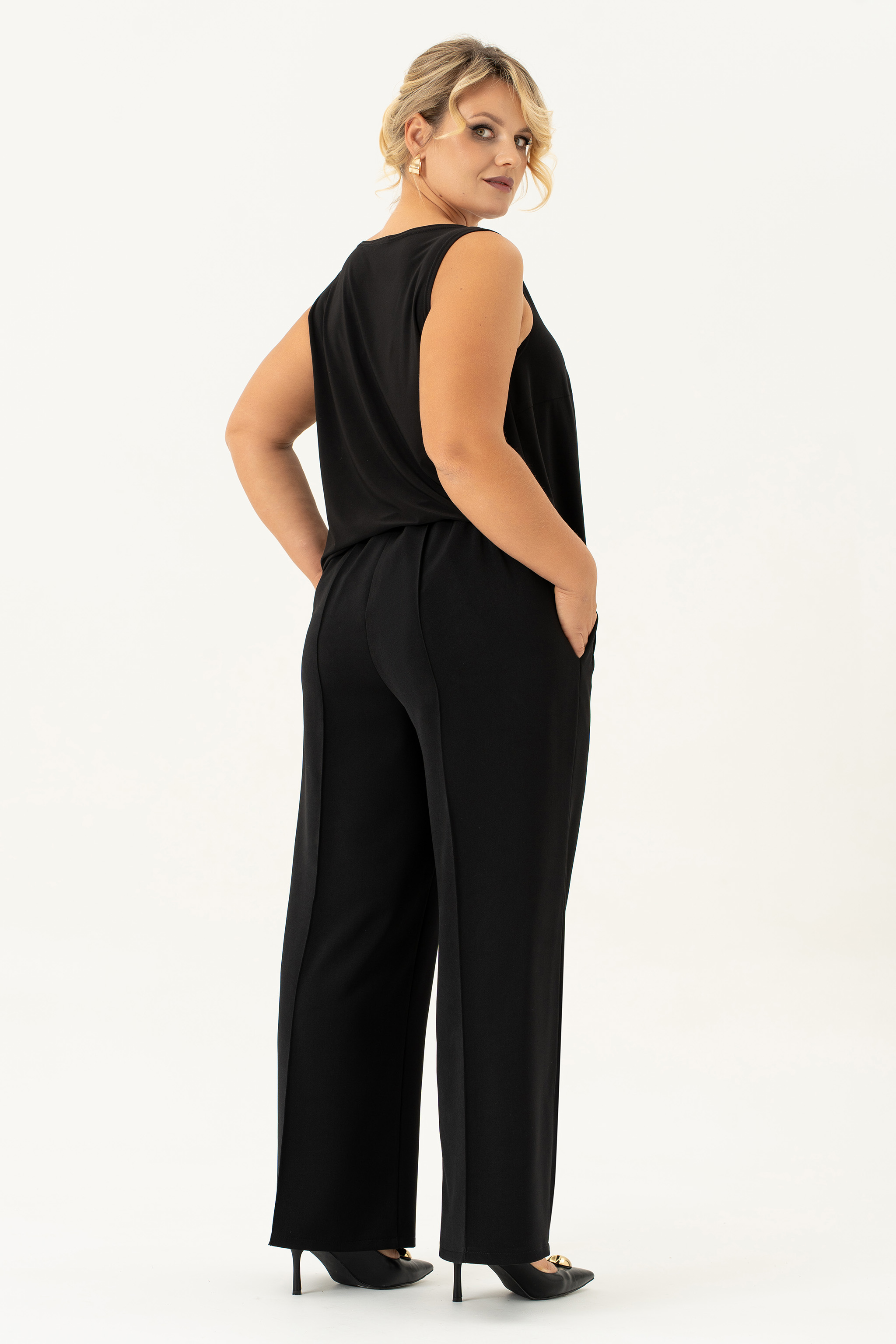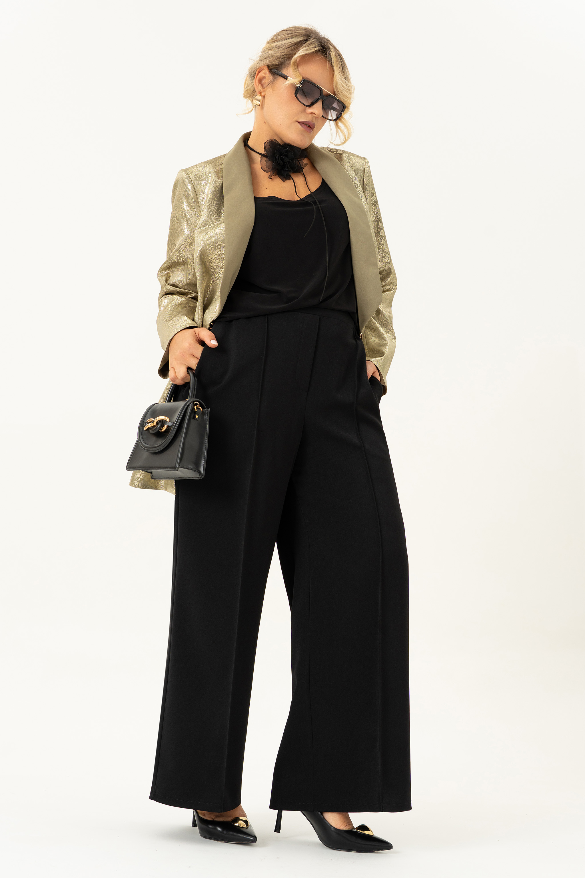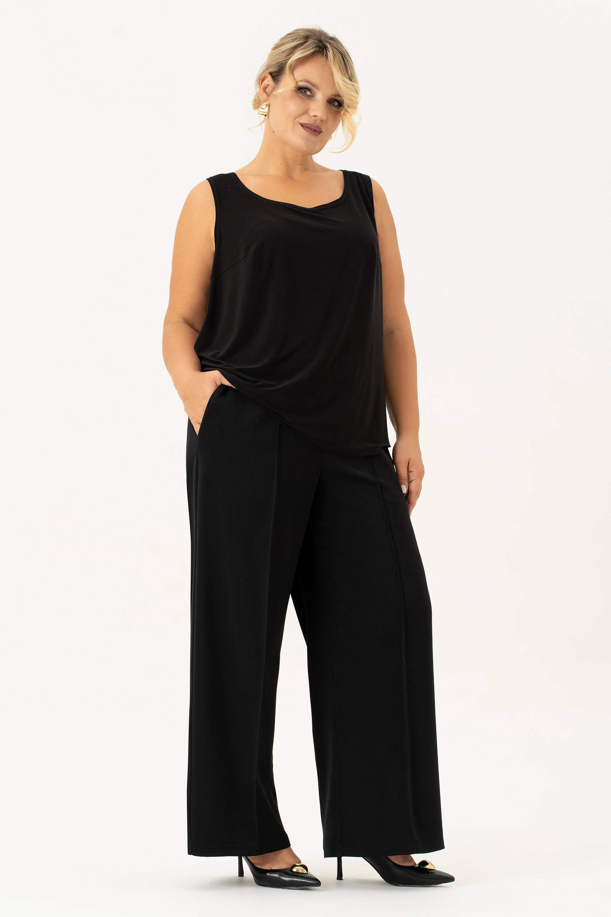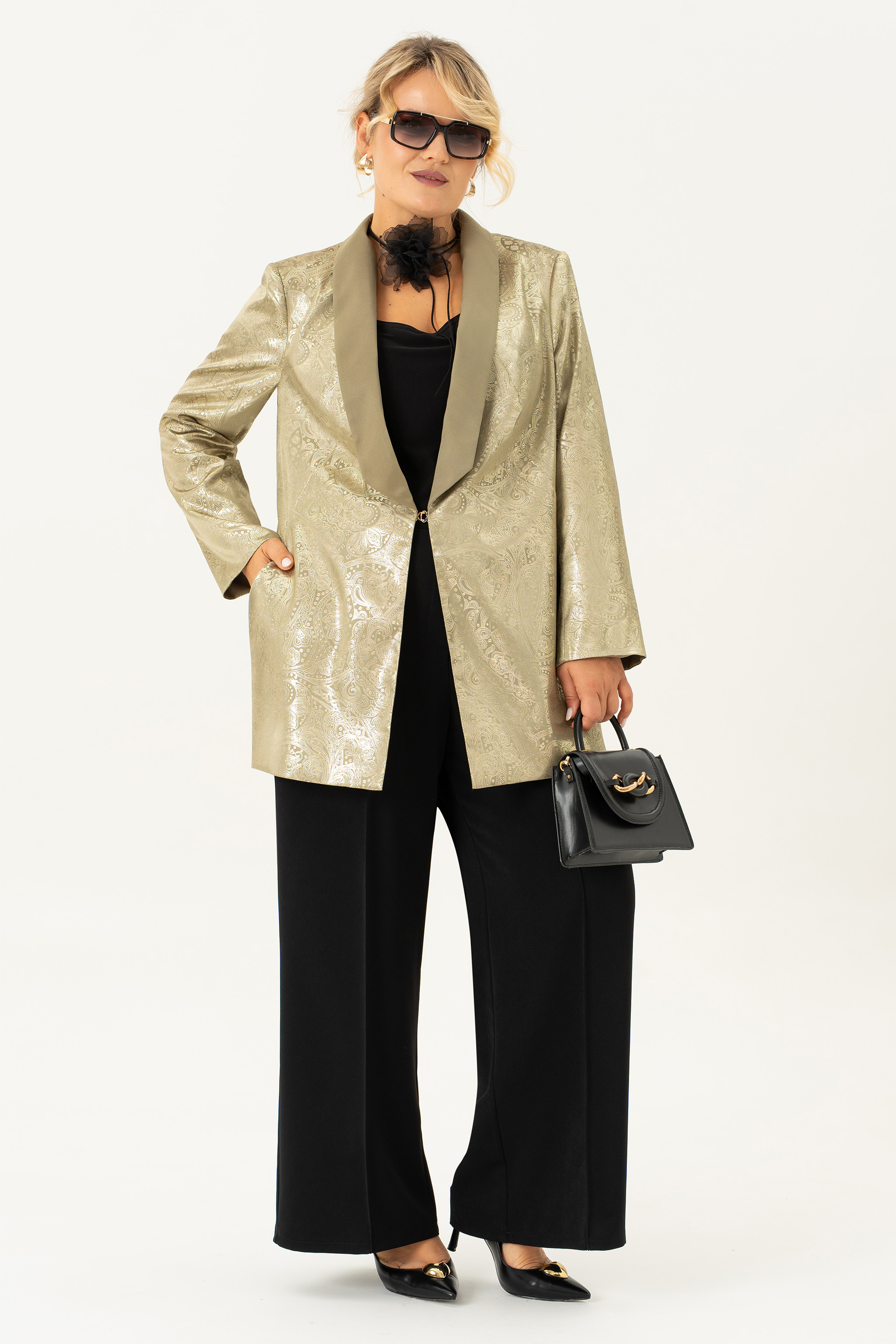 Этот комплект одежды идеально подходит для женщин, которые хотят выглядеть стильно и элегантно на любом мероприятии. Идеальный вечерний наряд, который придаст особый шик Вашему образу. Комплект состоит из брюк , блузы и жакета, и образует абсолютно классическую тройку. Неважно, это деловое собрание или праздничное мероприятие - этот брючный комплект подойдет для любого случая. Базовая модель прекрасно подчеркнет вашу фигуру и придаст вам очаровательный вид. Комплект выполнен из качественной ткани и дополнен жакетом с застежкой на декоративный крючок , которые делают его еще более привлекательным и уникальным. На жакете обработан воротник шалька и карманы в фигурных рельефах. Жакет на подкладке с длинным рукавом. Блуза без рукова из стрейчевой ткани с нагрудными выточками. Брюки-палаццо на эластичной резинке с эмитацией гульфика. По переду расположены карманы с наклонным входом. Нарядный вечерний комплект создаст модный образ на свадьбу, или на вечеринку, а так же подчеркнет Ваш стиль . Брючный комплект женский больших размеров отличается высокой степенью практичности и универсальности,приобретая один комплект- Вы получаете много образов, комплектуя элементы комплекта с другими вещами из своего гардероба!