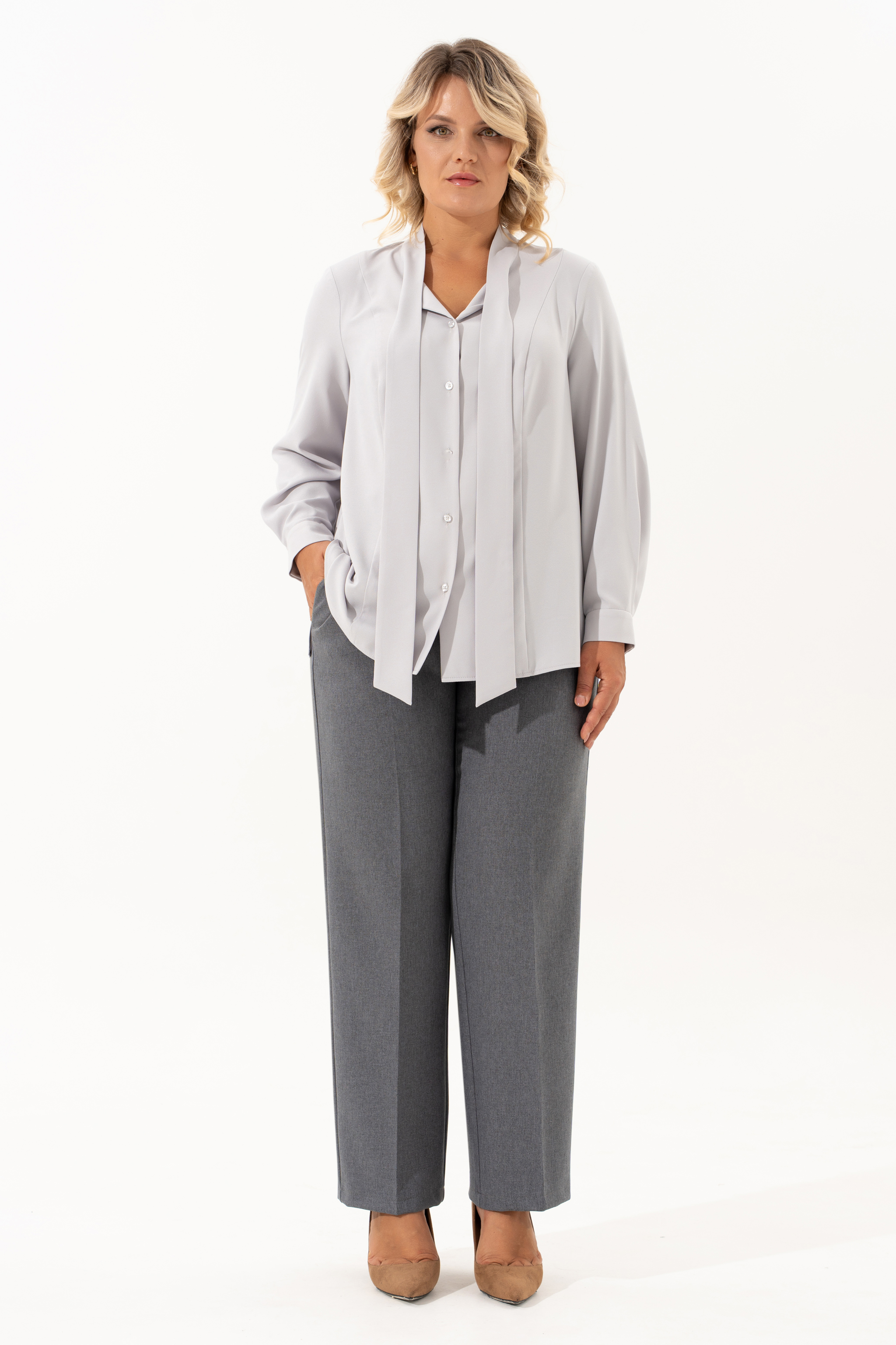 Нарядно- повседневный комплект   это идеальное решение для Вашего гардероба. Комплект  состоит из трех  предметов - прямые брюки с высокой посадкой прямого кроя на молнии и на резинке, с боковыми карманами сочетаются  с любыми базовыми вещами. Универсальный классический жилет с V-образным  вырезом горловины превосходно садится по фигуре, на правой полочке обработан прорезной карман с листочкой, на левой разрез , застежка обработана  на отлетном хлястике ,на петлю и пуговицу.  Этот элемент делает  его более интересным. Жилет на подкладке . Ассиметричный жилет можно одевать поверх тонкой одежды. Прекрасная классическая блуза с воротником - бантом имеет прямой крой, поэтому отлично подходит для любого типа фигуры. Спинка со средним  швом. По переду блузы есть рельефы от плечевого шва, в боковых швах - небольшие разрезы. Блуза изготовлена из приятной к телу ткани, гладкая фактура  не мнётся и сохраняет свой первоначальный вид даже после многократных стирок. Рукав втачной, одношовный,  длинный с манжетой на две петли и пуговицы. Комфортная модель для работы и просто для повседневного применения, так и к композиции нарядного ансамбля. Элегантная блуза с бантом - утончённая  универсальность, комфорт.  Базовый брючный комплект идеален для повседневного  образа- деловая встреча, в офис.  Современный  комплект  также будет хорошо смотреться как вечерний наряд на различные мероприятия, праздники, день рождения, корпоратив. Шикарный нарядный станет незаменимым в Вашем гардеробе . Этот комплект подчеркнет Вашу уверенность и стиль.