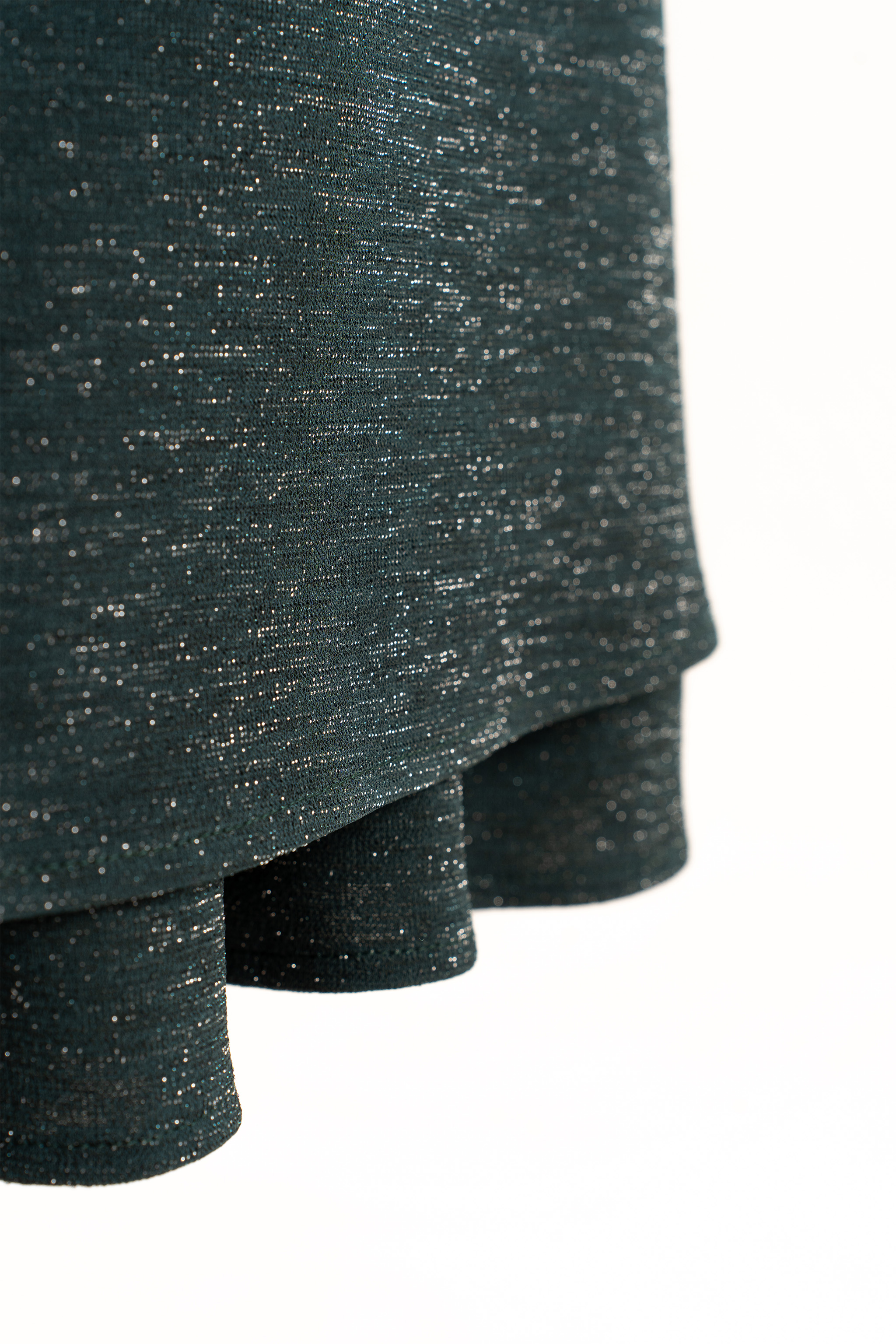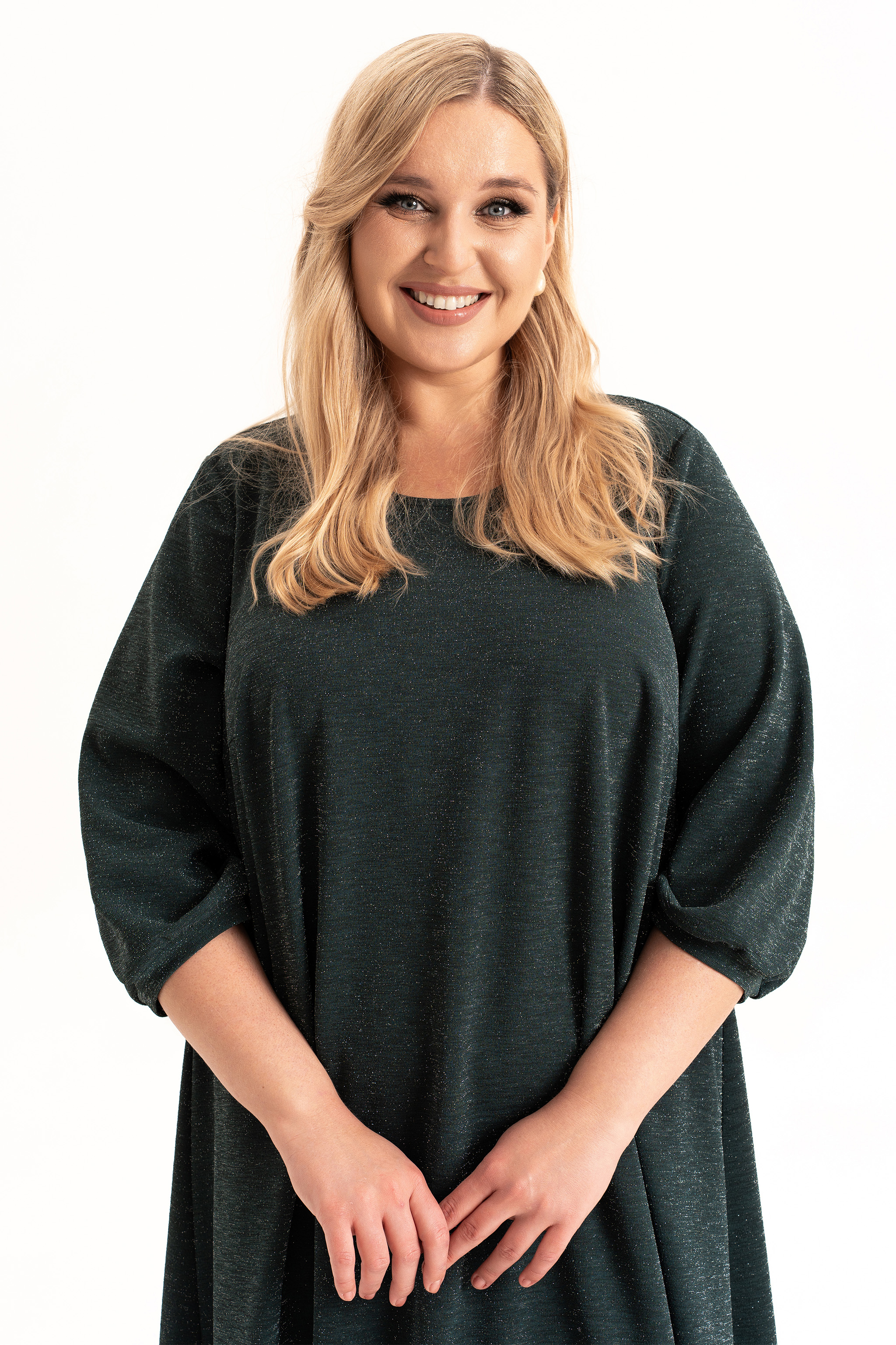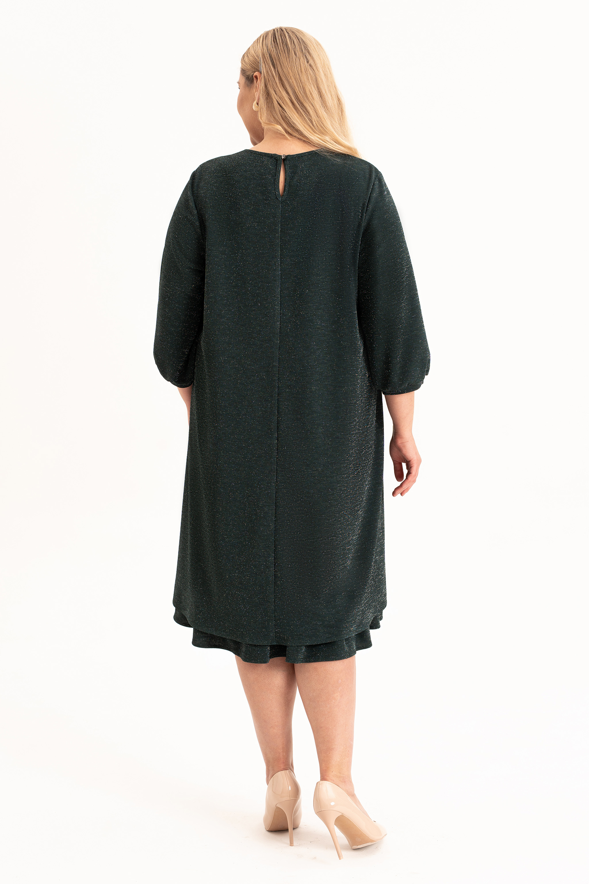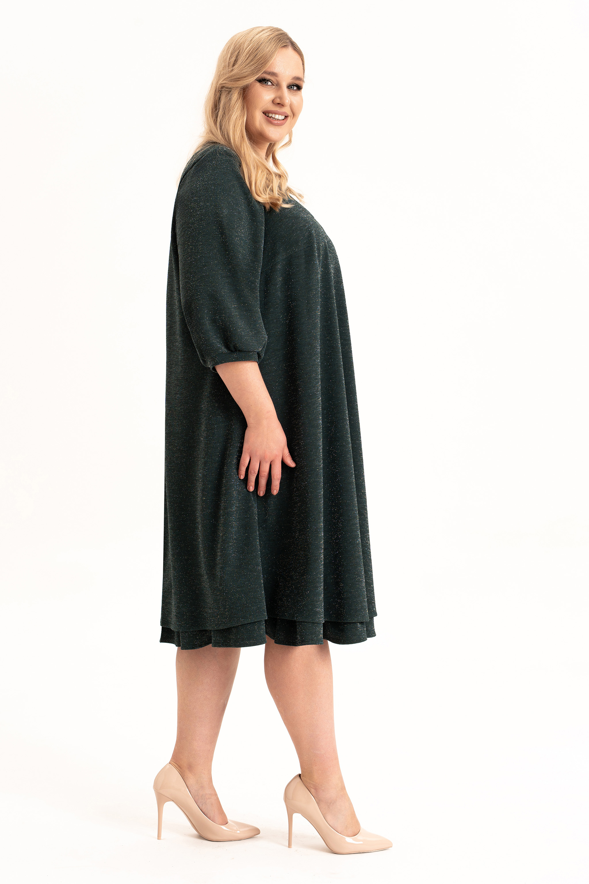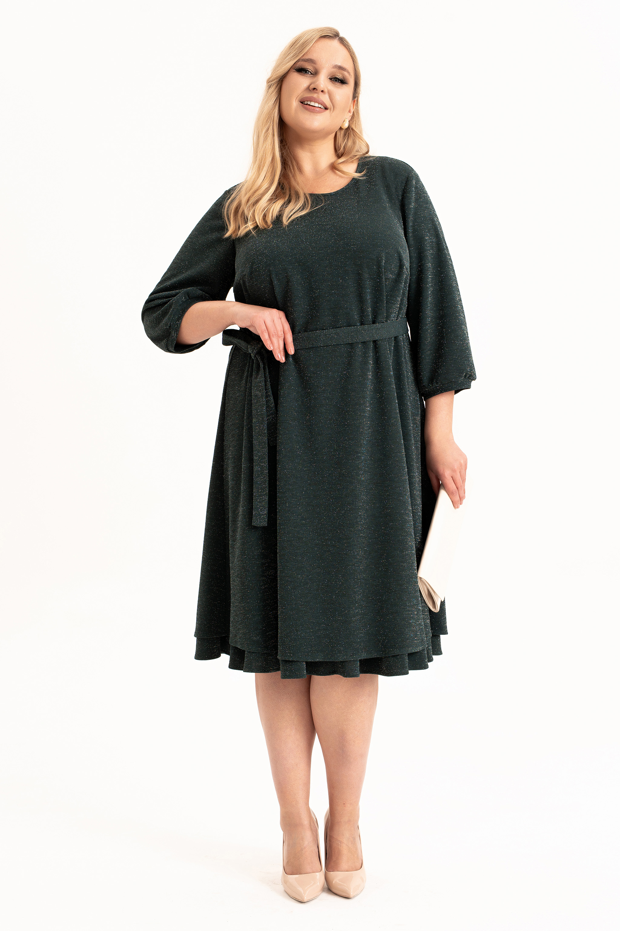 Элегантное платье  на трикотажной подкладке  в стиле Pinterest (пинтерест) свободного кроя станет стильным выбором для создания разнообразных образов. Выполненное из трикотажного, тонкого полотна с блеском, оно подчеркивает женственность и комфорт. О-образный вырез горловины добавляет нотку утонченности, делая его подходящим для вечерних мероприятий и фотосессий. Спинка со средним швом и каплевидной застежкой на пуговице. Низ платья обрамляет волан, наполняя образ воздушной многослойностью. Рукава длинной ¾ и манжеты создают эффект "фонариков", придавая наряду романтичный вид. Съемный пояс , А-образный силуэт и волан по низу изделия  делают модель удобной, нарядной и комфортной. Оно идеально впишется в осенний , зимний и весенний гардероб и будет актуально для выхода на выпускной, вечеринки или торжественное мероприятия. Пышная юбка создает легкость движения, а минималистичный стиль отлично сочетается с аксессуарами разных стилей. Модель, которая просится в каждый гардероб!
