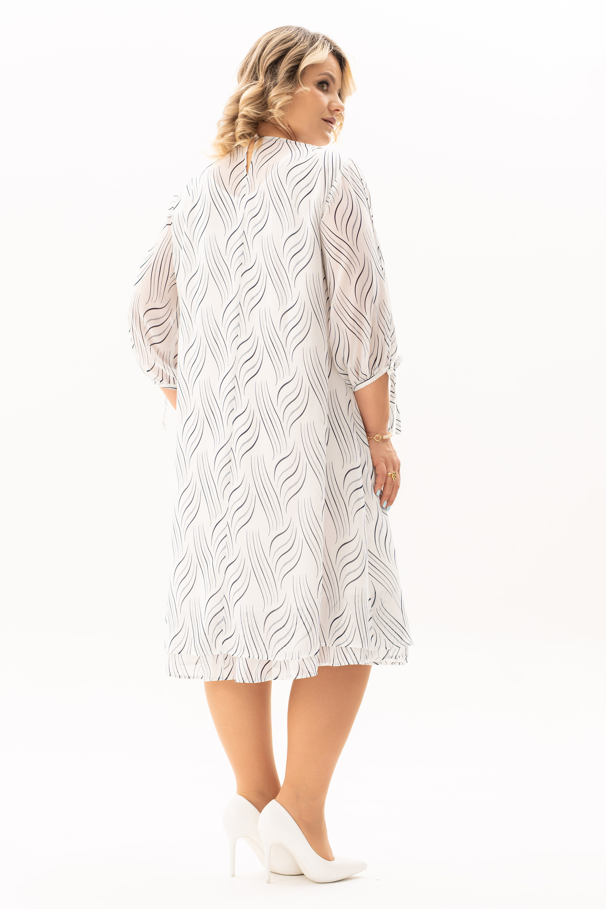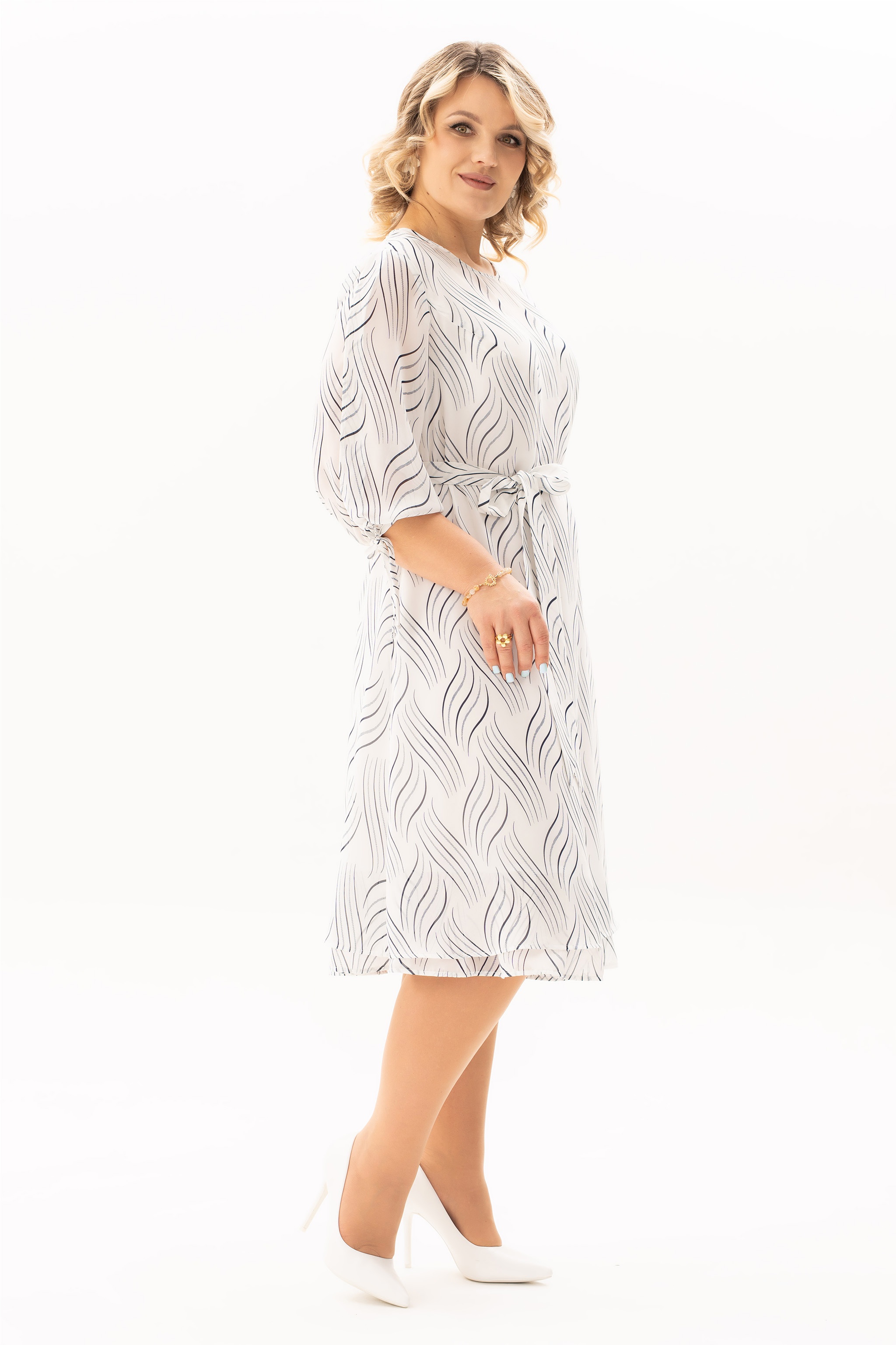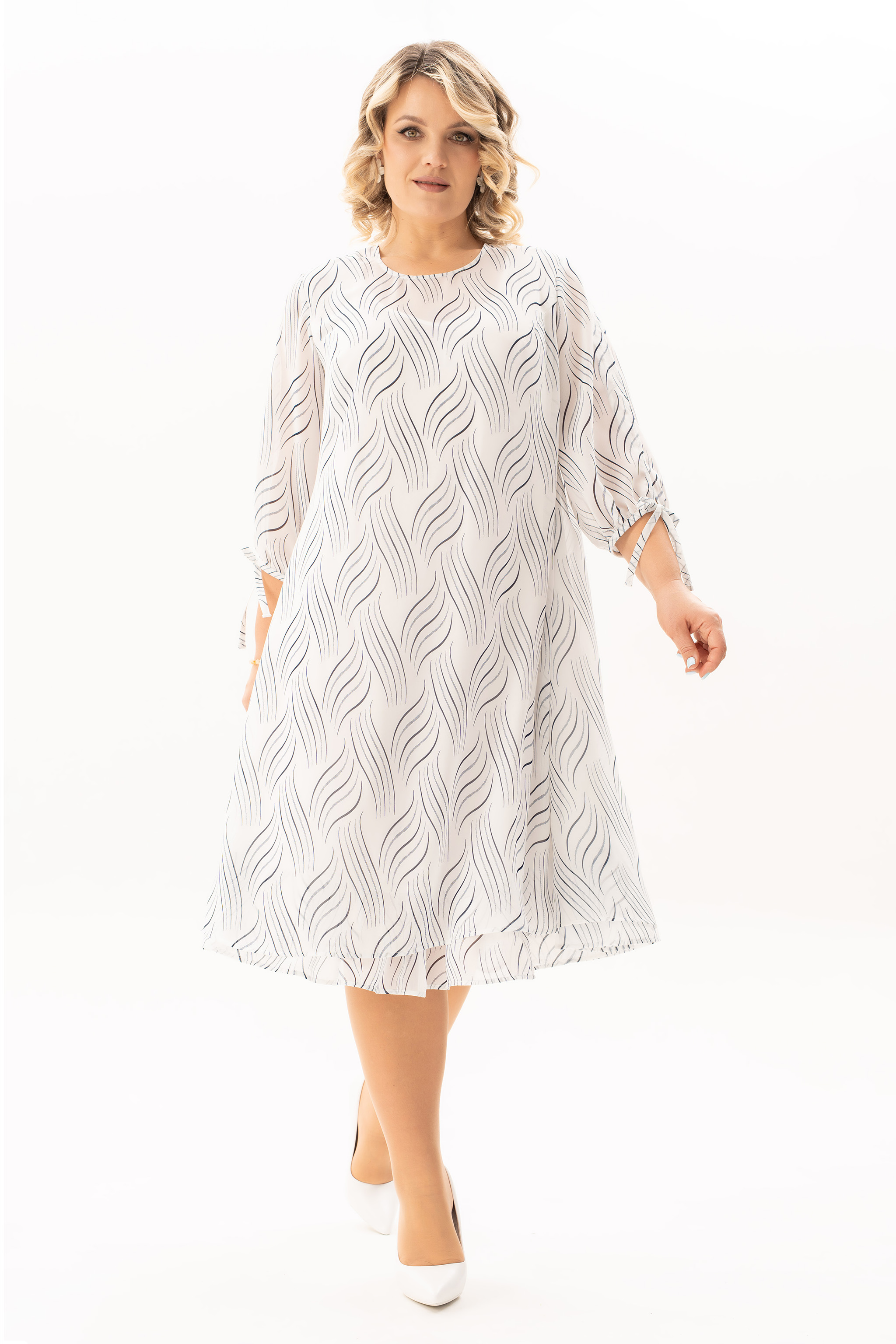 Эффектное платье из шифоновой ткани. Горловина овальной формы, нагрудные вытачки направлены от бокового шва к центру груди, спинка со средним швом и каплевидной застежкой на пуговице. Низ платья обрамляет волан, наполняя образ воздушной многослойностью. Рукав втачной, одношовный, низ рукава собран на эластичную декоративную тесьму. Платье на трикотажной подкладке. Нарядное платье, в котором Вы будете выглядеть женственно и романтично. Платье скроет все неровности фигуры! К платью прилагается съемный пояс. Платье выручит при выходе по любому случаю.