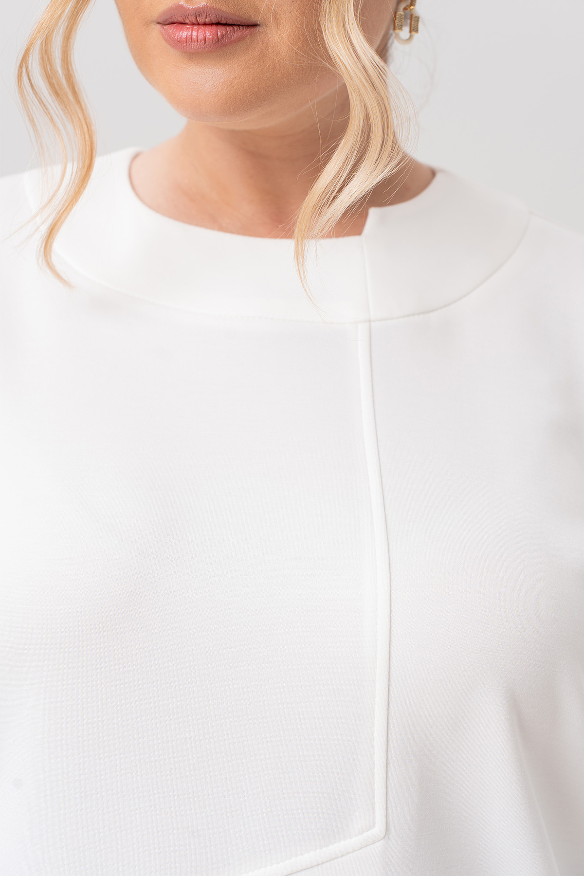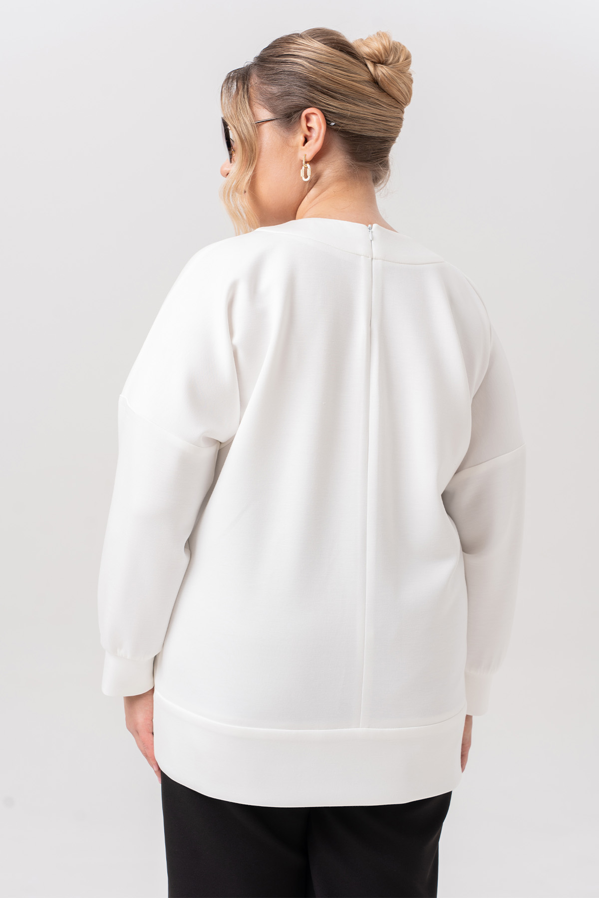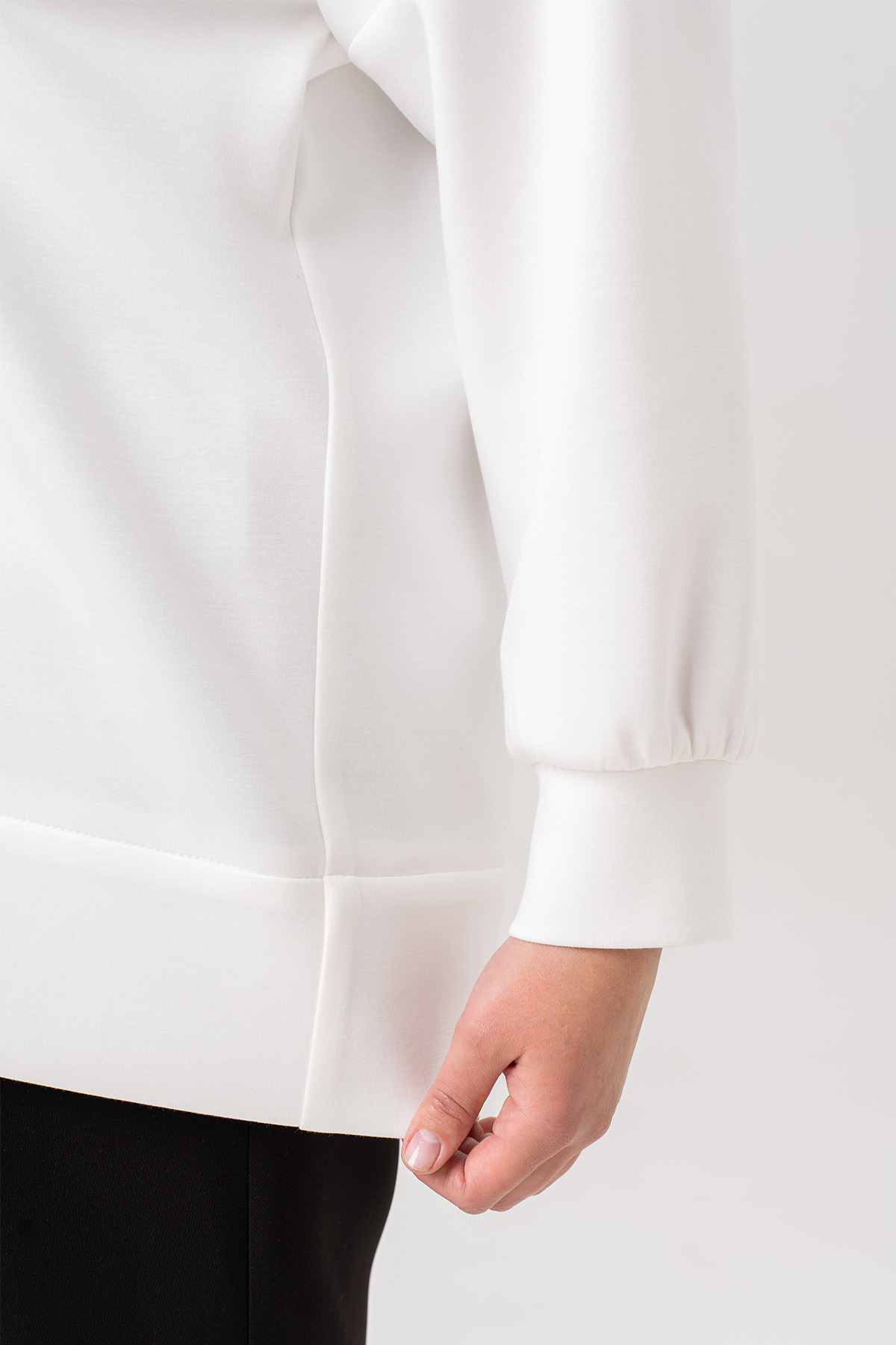 Позвольте себе насладиться комфортом и стилем с нашей туникой, которая станет вашим незаменимым спутником. Этот  стильный свитшот  предполагает легкость и свободу движений, что делает  идеальным для повседневной носки и прогулок на свежем воздухе. Изготовленный из качественного трикотажа, он обеспечивает дышащие свойства и гипоаллергенность, что особенно важно для женщин с чувствительной кожей. Туника с круглой, асимметричной горловиной и манжетами на запястьях добавляет образу женственности и утонченности. На полочке обработана нефункциональная, декорированная пуговицами планка. На спинке, в среднем шве, обработана потайная молния.Она легко сочетается с различными аксессуарами,юбкой,брюками и разной обувью, что дает возможность создавать разнообразные образы.